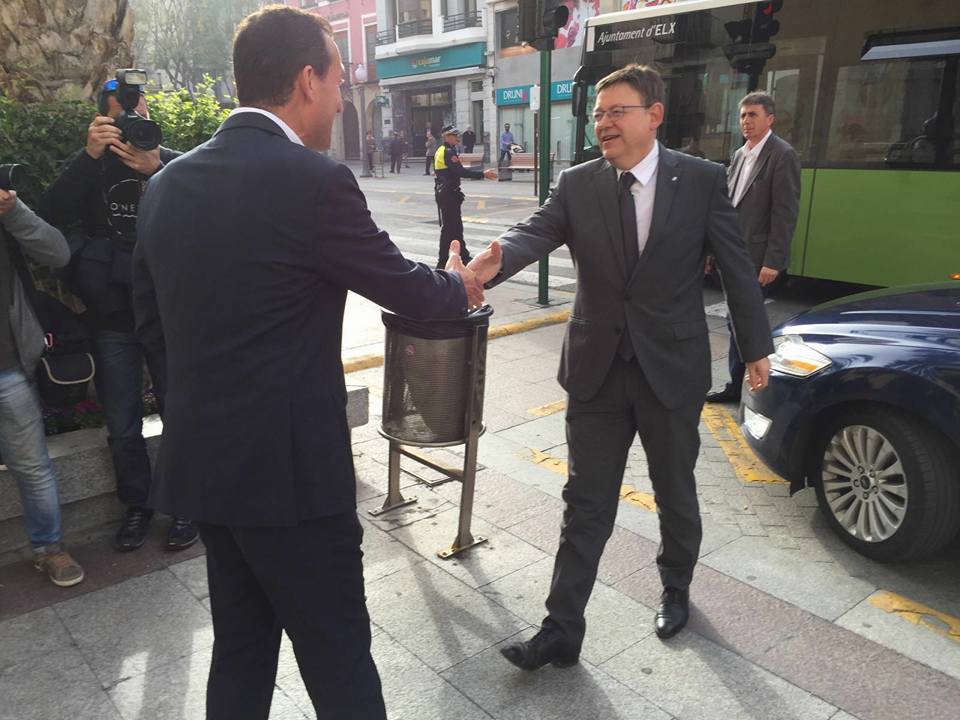 ¿Cómo lo solucionamos? Los miembros del Consell fueron accediendo al Consistorio asistidos por el personal del Gabinete de Protocolo, con la llegada del President de la Generalitat, se opto por realizar una línea de saludo informal, donde el alcalde de la ciudad, acompañado por la concejala de representación institucional recibieran a pie de coche, sin corte de calle.