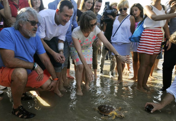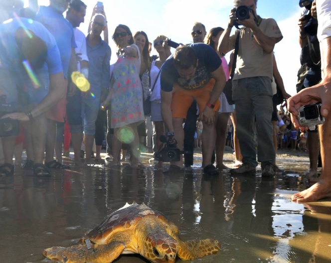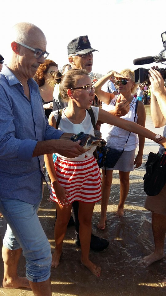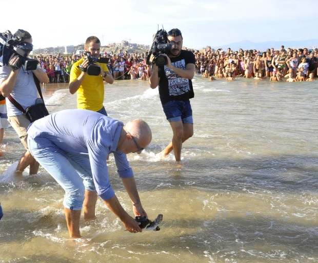 - Suelta de tortugas por parte de las autoridades. Los técnicos de l´Oceanogràfic se negaban a realizar la suelta si la gente no dejaba espacio suficiente a los animales.