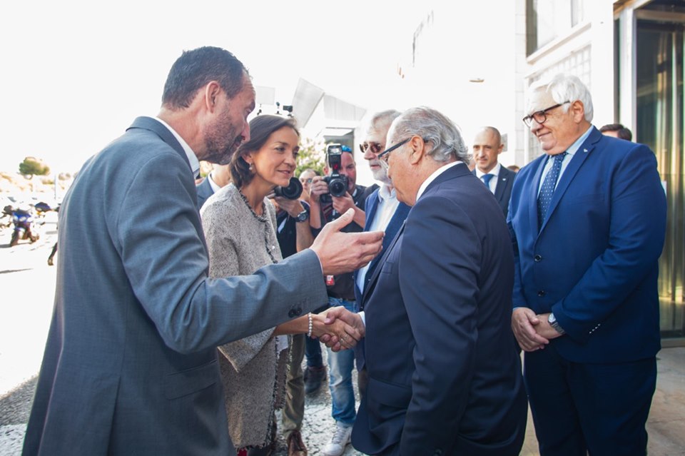 A la llegada de la Ministra, adiós a las líneas de saludo, recibimiento cercano a pie de coche por las principales autoridades y empresarios de la organización, para posteriormente, acceder al hall del edificio donde tuvo la oportunidad de saludar al resto de personalidades que estarían durante la visita, y realizar una foto de familia.