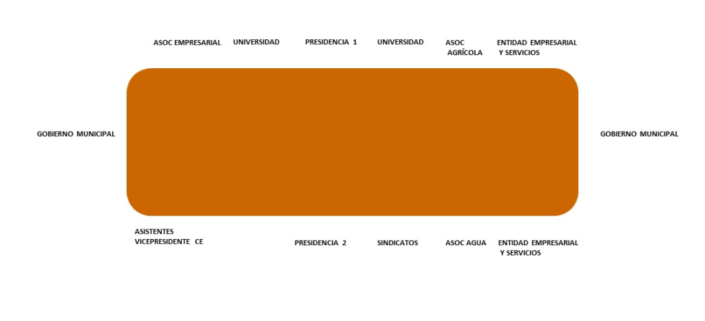 Y para el resto de invitados se distribuyeron en la mesa por grupos de interés, reforzando ambos flancos de la mesa por parte del gobierno municipal, como anfitriones del evento.