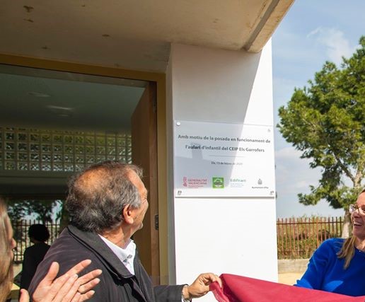 - DESCUBRIMIENTO PLACA: Debido a que este proyecto ha sido un gran logro para el centro, desde la Conselllería de Educación, de modo casi excepcional se permitió una placa con el siguiente texto en valenciano: Amb motiu de la posada en funcionamente de l´auri d´infantil del CEIP Els Garrofers,» Con motivo de la puesta en funcionamiento del aulario de infantil del CEIP Els Garrofers».