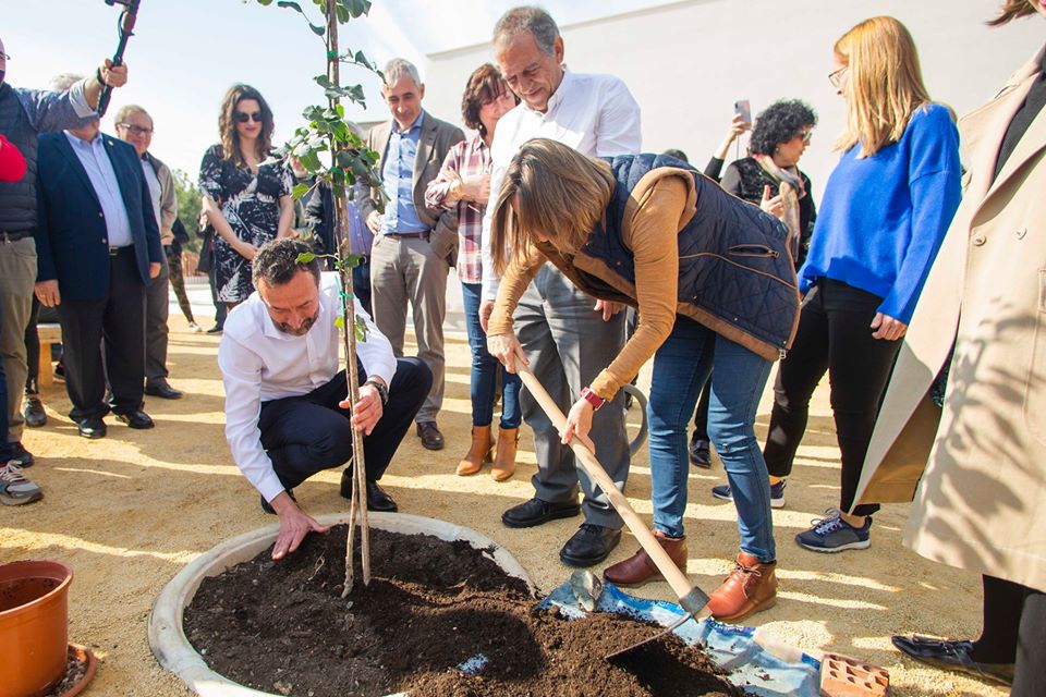 - PLANTACIÓN SIMBÓLICA: El centro escolar se denomina » Els Garrofers» «Los Algarrobos» un árbol que se encuentra en los alrededores del colegio, y por tanto, optamos por realizar una acción sostenible. Las autoridades, plantaron el árbol como recuerdo de la visita.