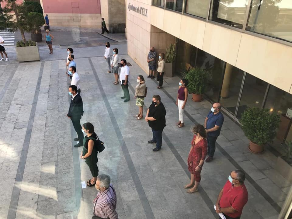 Veámoslo con ejemplos: en las primeras imágenes, la situación epidemiológica de Elche, era mucho más restrictiva, y por tanto la participación de asistentes se reducía a los portavoces y al alcalde de la ciudad, con el paso de los meses, hemos evolucionado a un número más significativo de concejales/as en nuestros eventos.