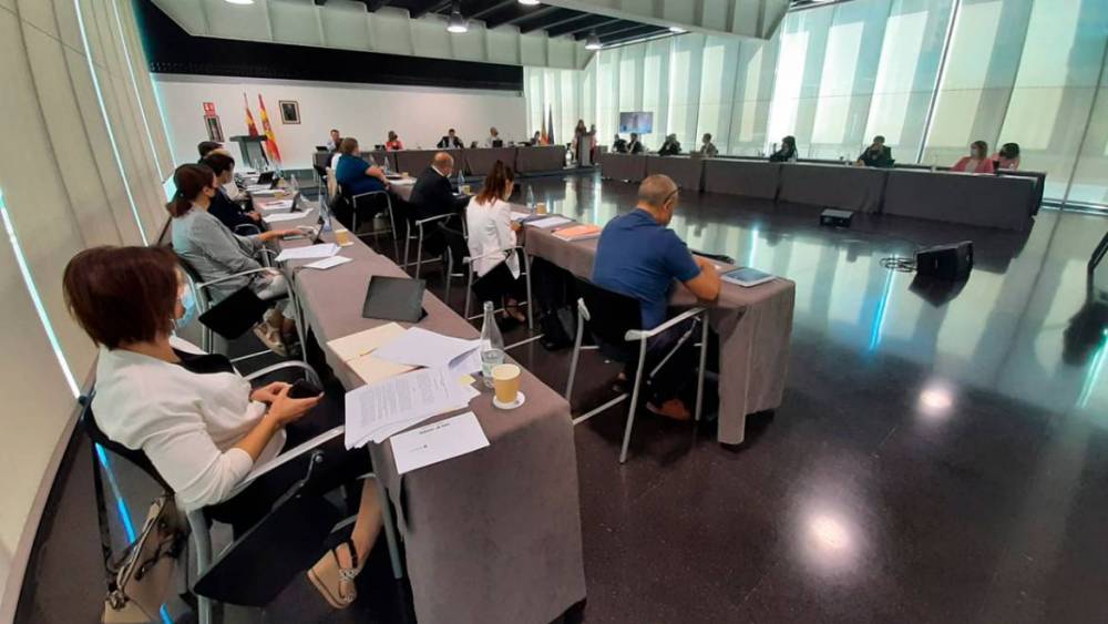 Aforo de la Sala de Exposiciones del Centro de Congresos de Elche donde se realiza el Pleno Municipal del Ayuntamiento de Elche, con medidas COVID-19 de reducción de aforo al 50 % ( medidas actuales de la Generalitat Valenciana), aforo total de 60 personas.