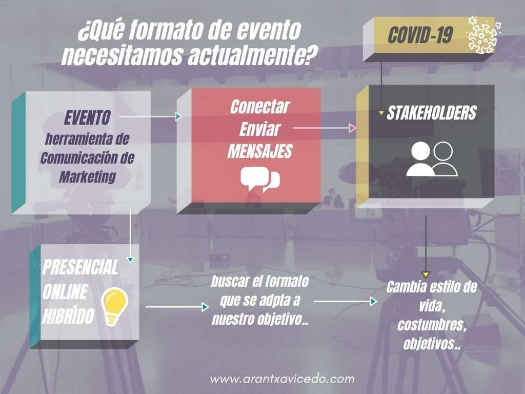 En esta entrada quiero abordar uno de los temas que más en boga están en la actualidad en el sector de los eventos: el tipo de formato que necesitamos actualmente o que por diferentes cuestiones nos debe de dictar la pandemia, haciendo especial hincapié en el formato hibrido.