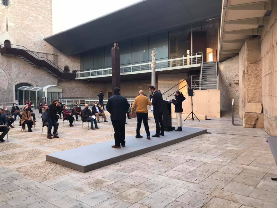 Debido a que son un público catalogado de riesgo, apostamos por un espacio al aire libre, el Patio de Armas del Palacio de Altamira de Elche. Este acto siempre se ha realizado en el Salón de Plenos municipales pero debido a la reducción de aforo actual, y en beneficio de los invitados al tratarse de un espacio al aire libre, optamos por trasladarlo al palacio.