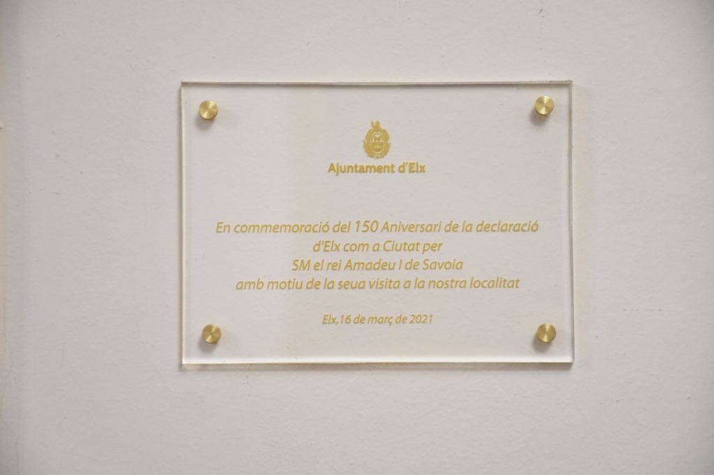 En esta línea y con el objetivo que la población y la historia de Elche no pierda de su memoria un hecho tan relevante como es la concesión de título de Ciudad, el Consistorio Ilicitano, promovió un sencillo pero emotivo acto el pasado 16 de marzo de 2021, día en el cual se conmemoraba el 150 Aniversario de la visita de S.M el Rey Amadeo I a nuestra localidad y donde maravillado por sus genuinos bosques del palmeras decidió conceder tan alta distinción a una pequeña villa de la provincia de Alicante.