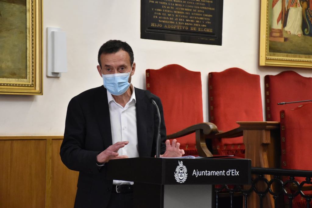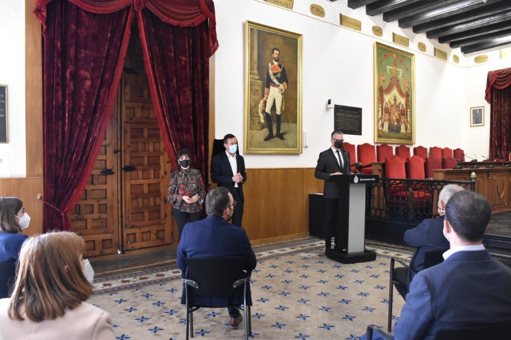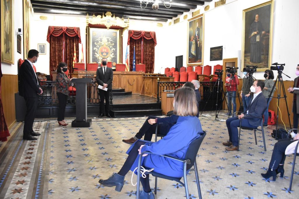 Los invitados al acto de conmemoración del 150 aniversario al escoger como venue el Salón de Plenos, nos acogíamos a un aforo reducido( recomendable ante la situación actual y más seguro para nuestros invitados) en el cual solamente podían acompañarnos, los portavoces de los grupos municipales, el personal del archivo municipal, los medios de comunicación y director de la cátedra Pedro Ibarra de la Universidad Miguel Hernández de Elche, un organismo que trabaja precisamente para documentar todos los hechos que acontecen y han acontecido a la ciudad a lo largo de su historia para que estos no caigan precisamente en el olvido.