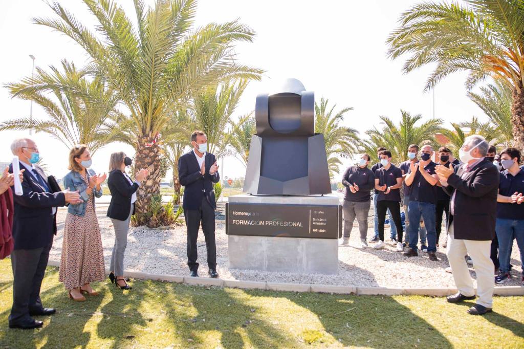 El acto de inauguración de un busto conmemorativo con la forma de la Dama de Elche que el Colegio Salesianos ha donado a la ciudad con motivo de su 50 aniversario estaba pensado en un primer momento, por cuestiones de la pandemia, para un aforo muy reducido en el que participaran el equipo directivo, los estudiantes de formación profesional que habían trabajado directamente en el proyecto y los medios de comunicación. Pero gracias a la realización de un análisis de la situación y la implantación de las medidas preventivas sanitarias fue viable abrir el mismo al resto de alumnos de FP y algunos profesores.
