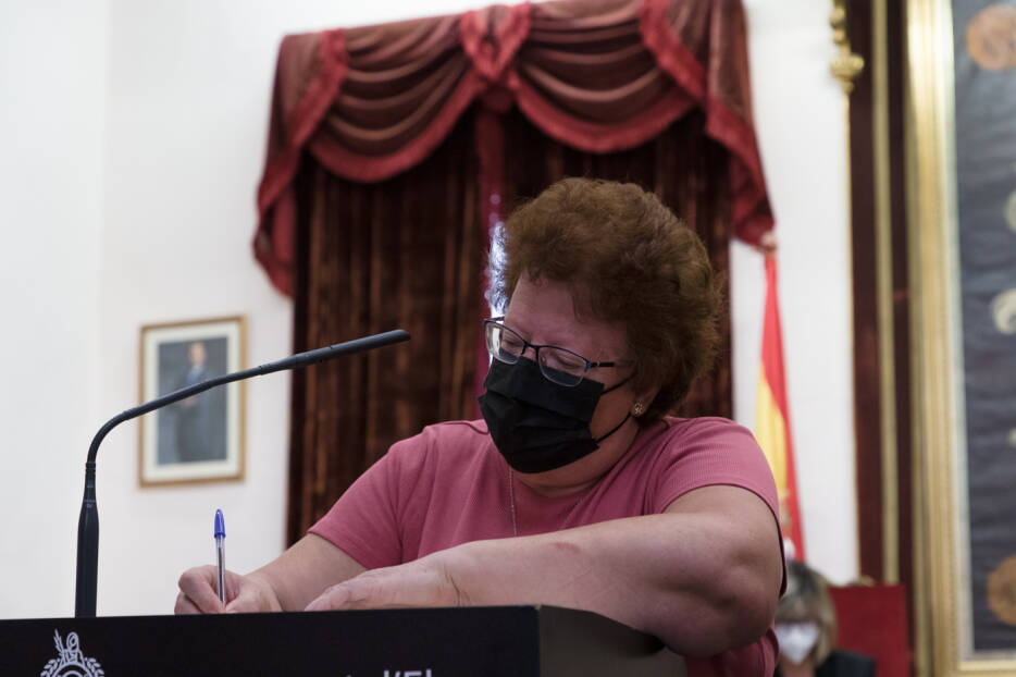 - Inicio de la firma de la Declaración ( los representantes de las asociaciones y colectivos de los regantes se acerca de modo individual situado en el centro del escaño para realizar la firma de modo individual, manteniendo medidas sanitarias pertinentes).