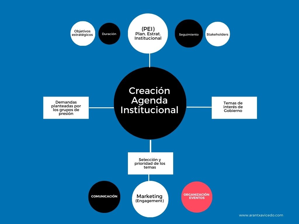 La Agenda Institucional de una institución se enmarca en el denominado PEI o Plan Estratégico Institucional. De manera sencilla, un PEI es un documento en el que se incluyen los componentes del direccionamiento estratégico de la entidad pública, es decir, aquellos que orientan el quehacer institucional. Por tanto, y para que el Plan se pueda ejecutar de manera resolutiva se precisa de la creación de una Agenda Institucional que gestione estratégicamente las relaciones con los públicos objetivos de la entidad.