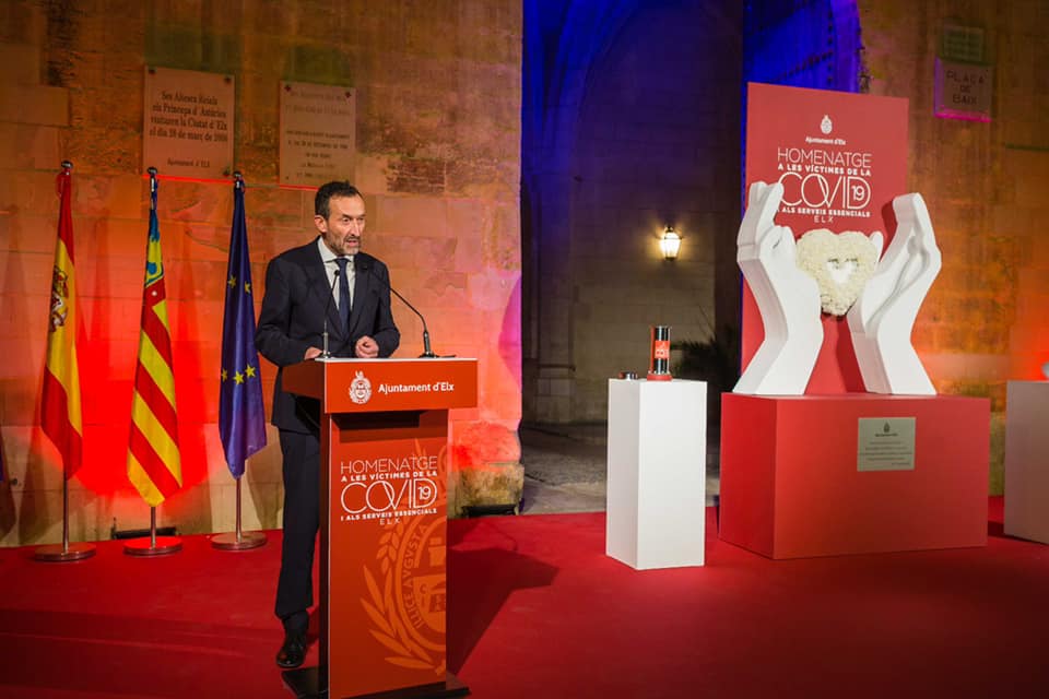 Y llegó el 17 de noviembre de 2021, y la Plaça de Baix de Elche, acogía el primer acto institucional tras su remodelación, un Acto Institucional muy simbólico, se puede decir que único, había llegado el momento de homenajear a las víctimas de la Covid19 en nuestra ciudad, y por supuesto a los servicios esenciales.