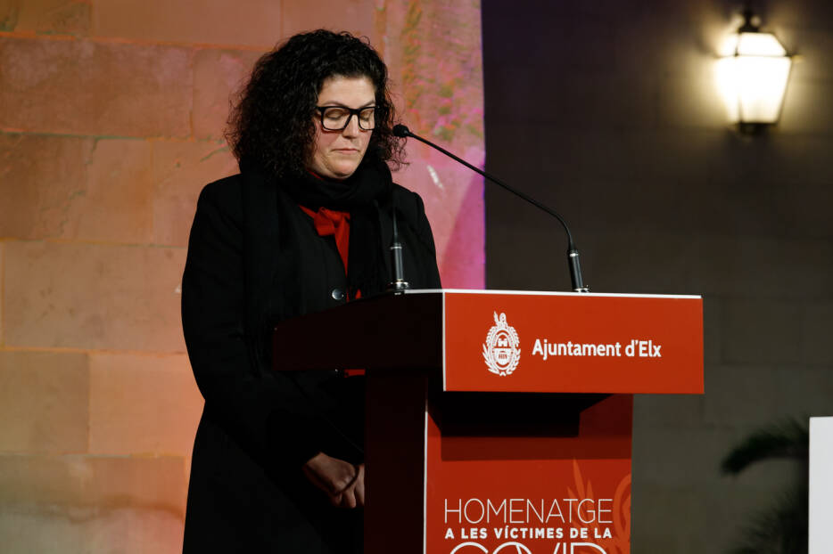 Tras el discurso institucional del alcalde de la Ciudad, llegó el momento de honrar la memoria de los ilicitanos que habían perdido la vida durante esta difícil pandemia. Para ello, se invitó al escenario a los portavoces de los Grupos Municipales del Consistorio y a la presidencia del Acto, la Consellera de Sanidad, y la Consellera de Universidades del gobierno de la Generalitat Valenciana.
