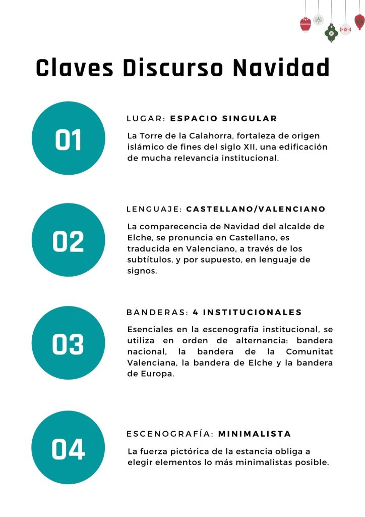 Como va siendo tradición en el Consistorio ilicitano y totalmente inmersos en la Navidad de 2021, el pasado 25 de diciembre se publicaba en las plataformas del Ayuntamiento de Elche y se le hacía llegar a los medios de comunicación, el tradicional discurso de Navidad del alcalde de la ciudad, Carlos González.