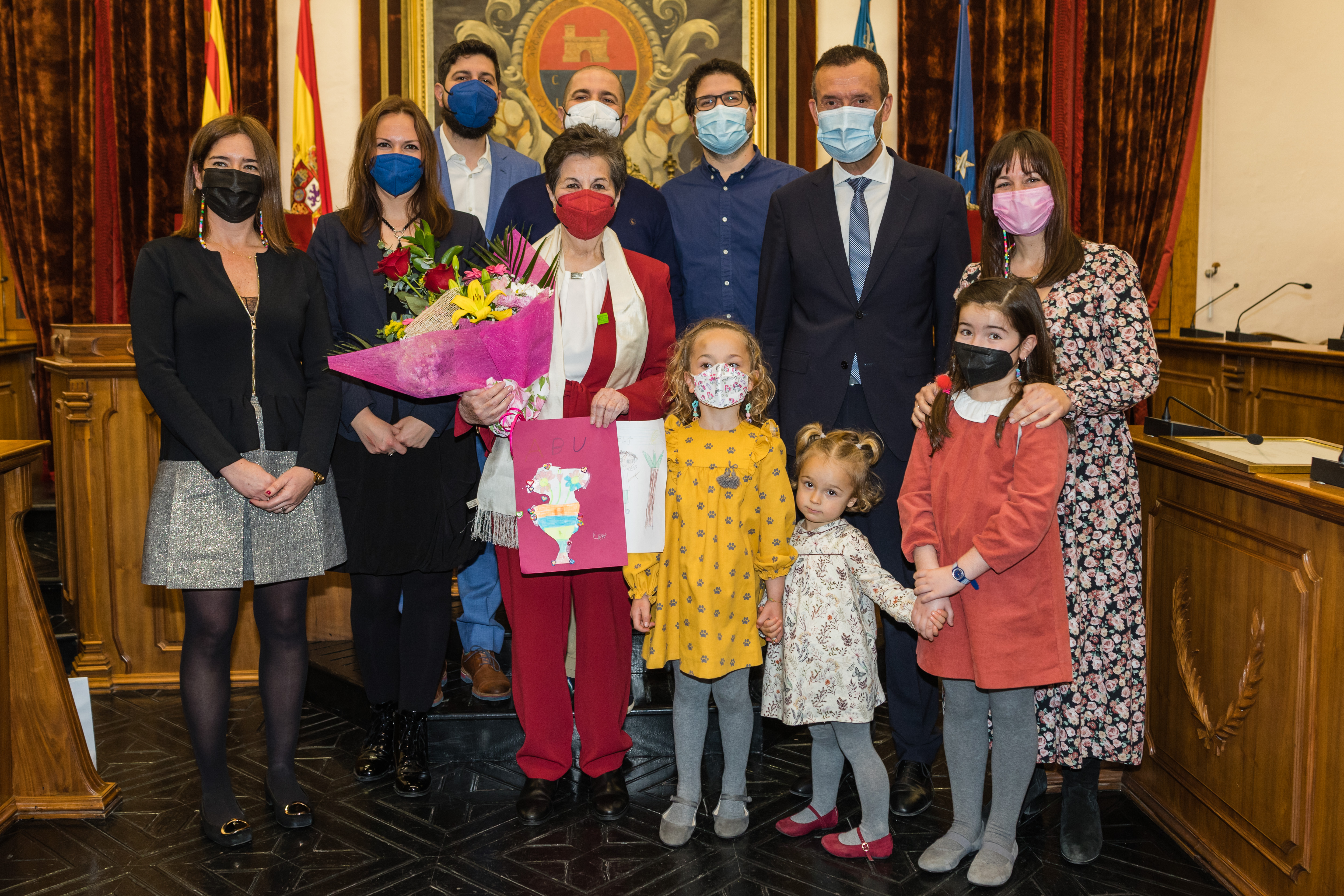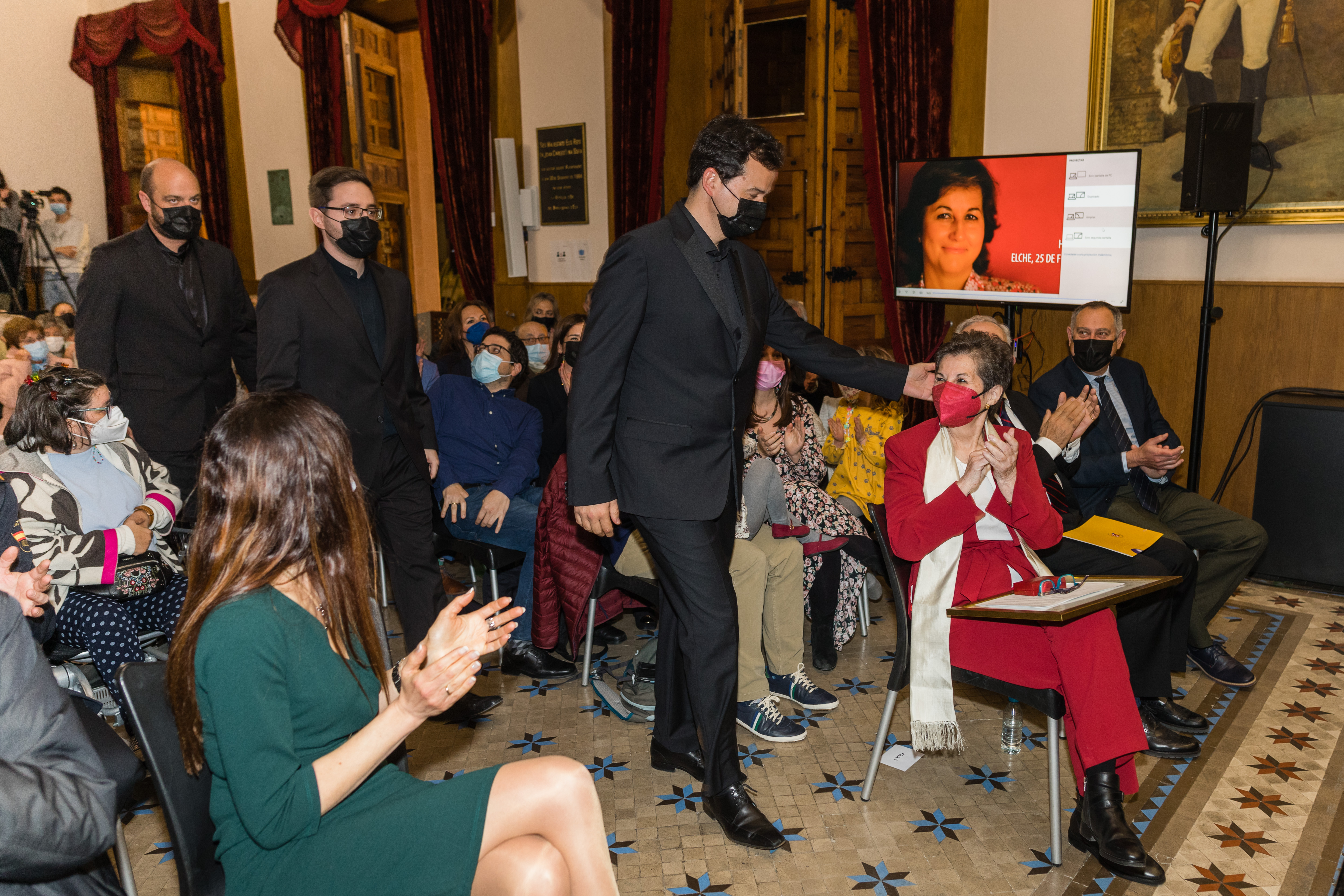 Tras ese momento tan emotivo y significativo, la Hija Predilecta de Elche, María Ángeles Sánchez ofrece sus palabras de agradecimiento, tras su discurso vuelve de nuevo con el resto de sus invitados.
