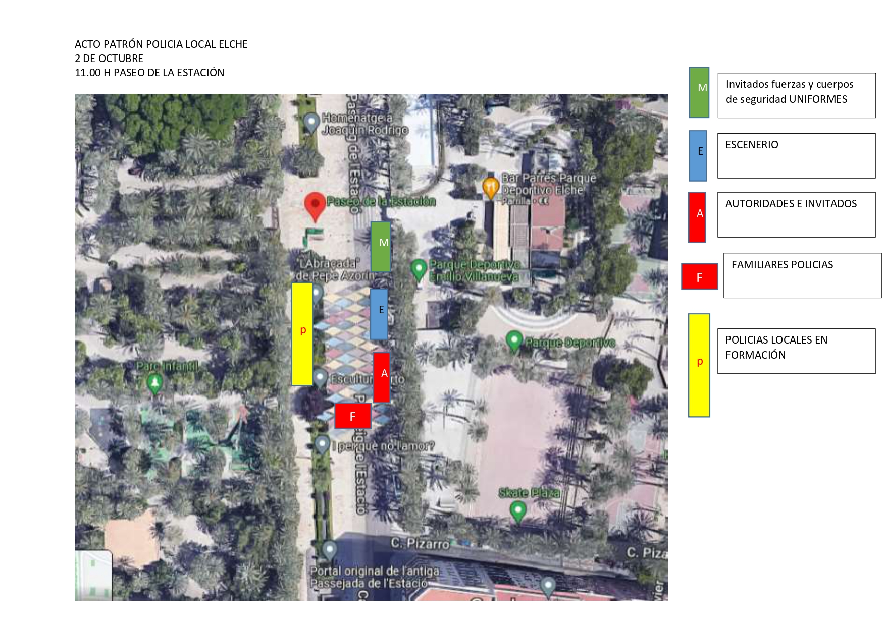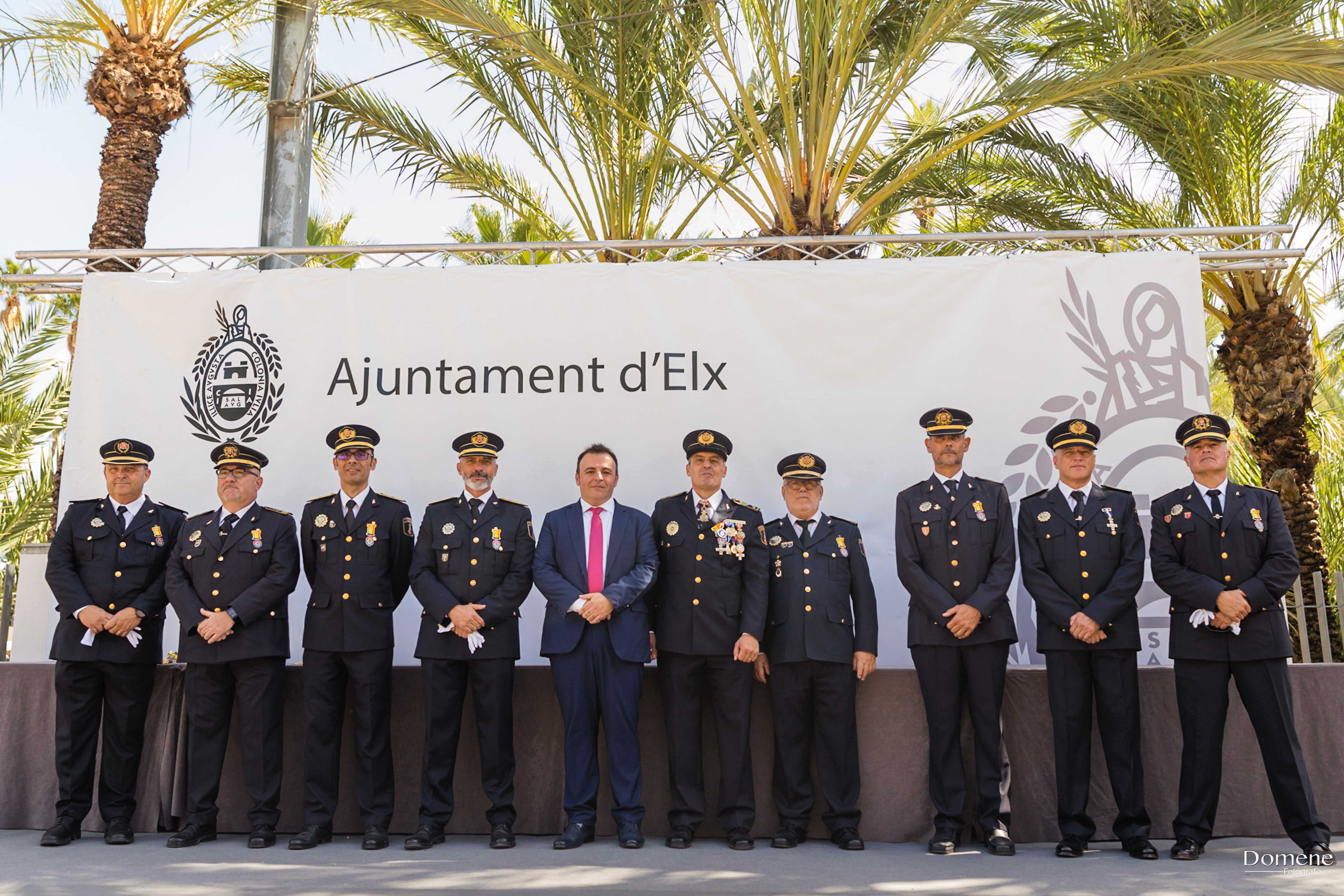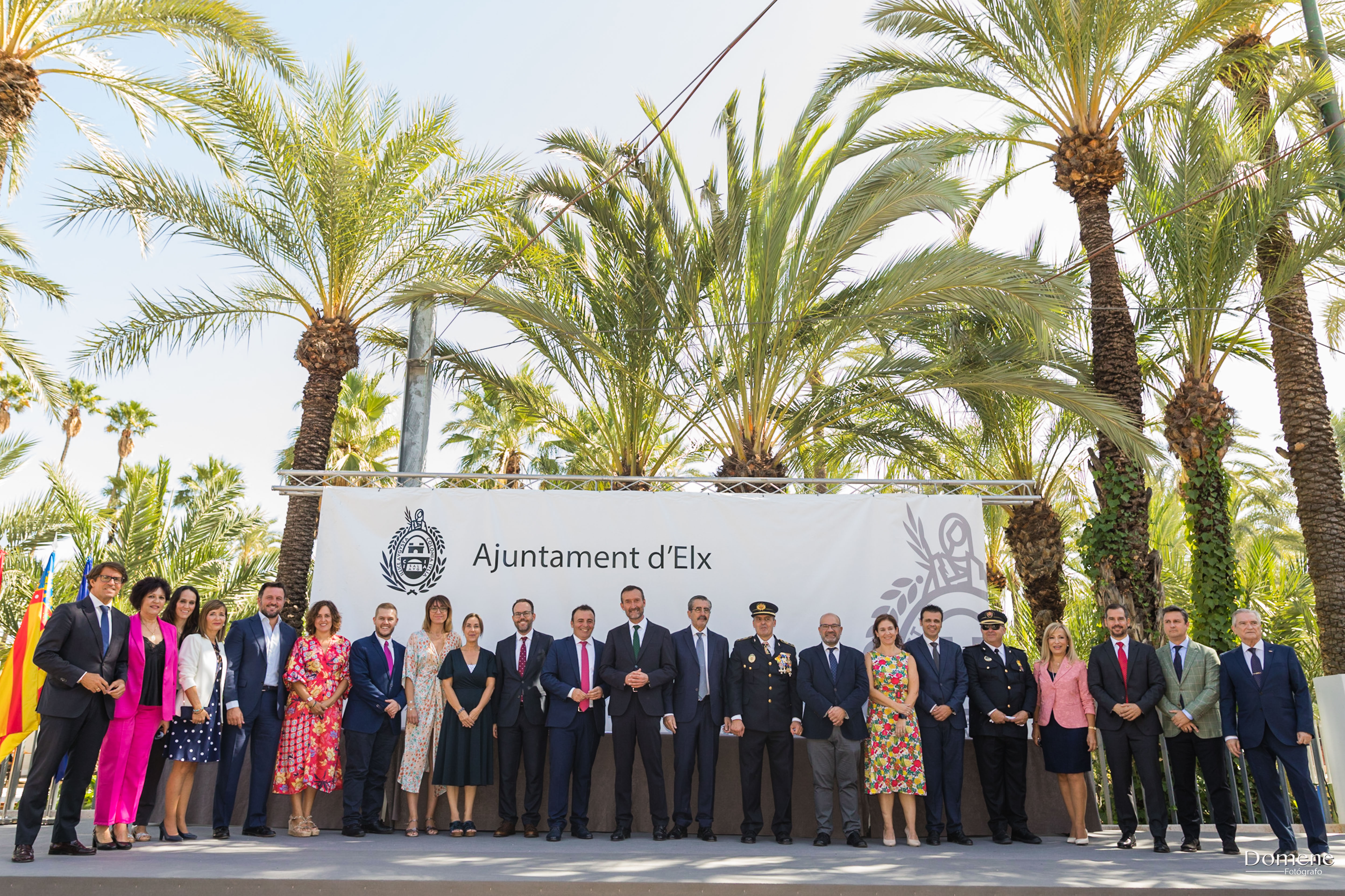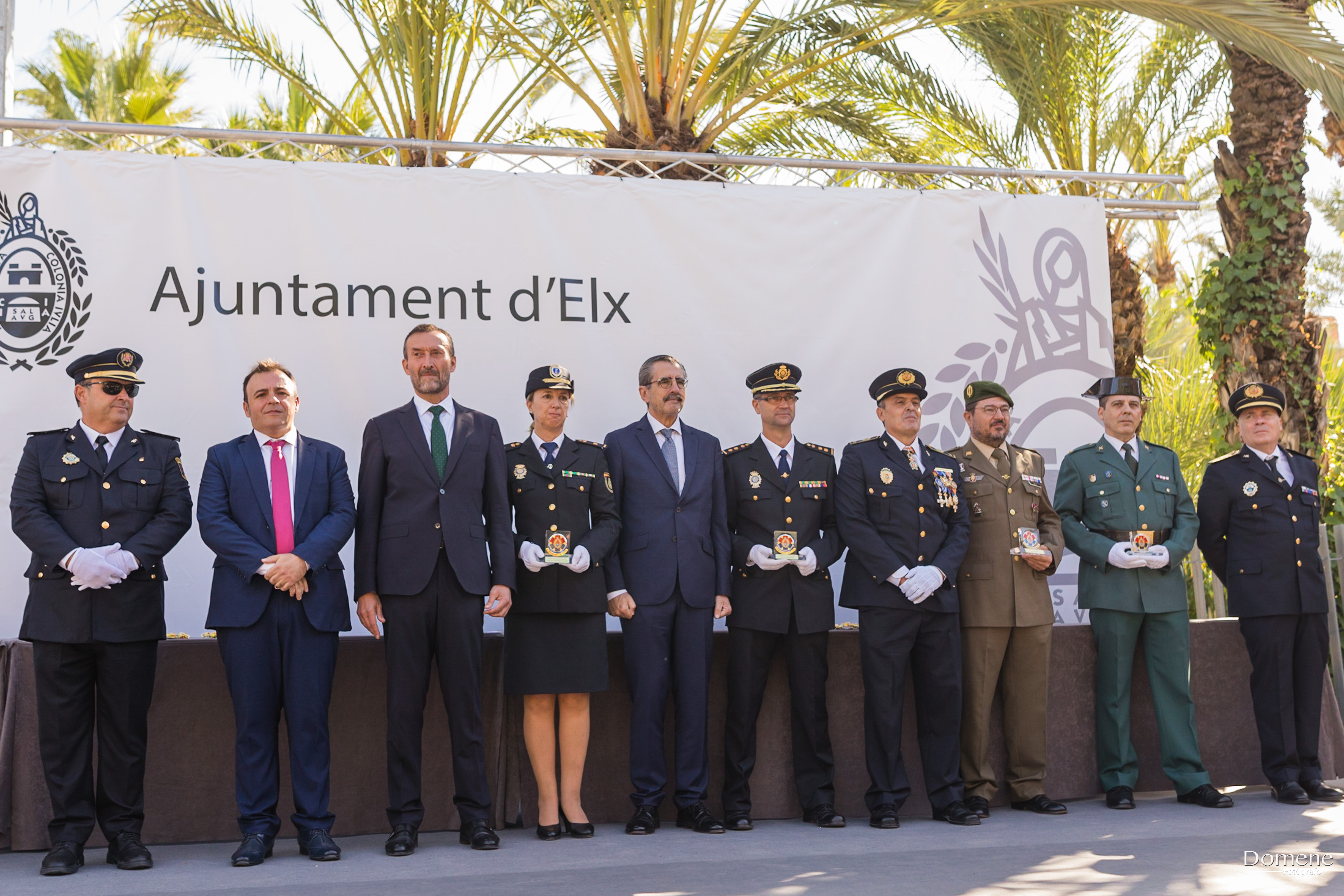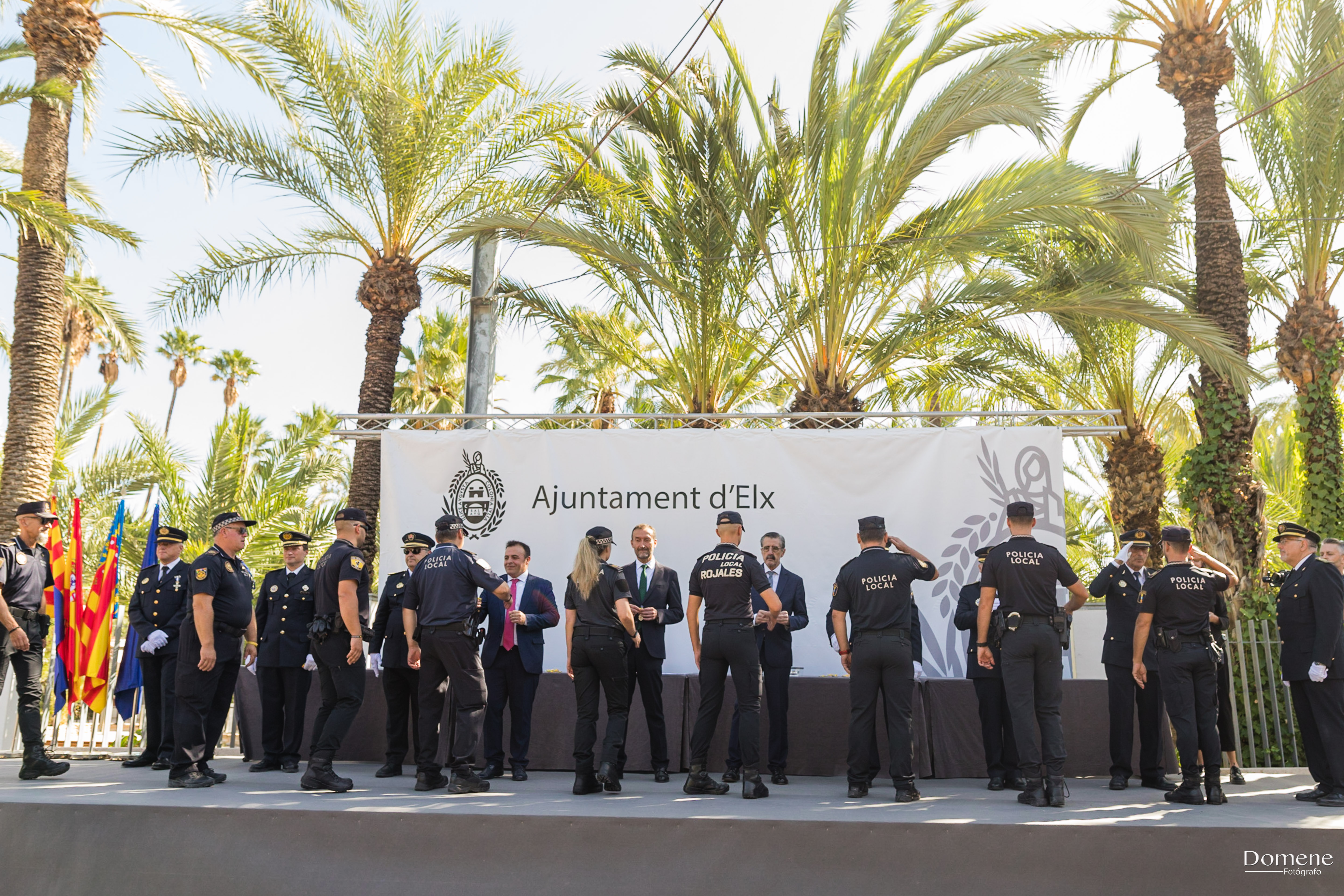 La elección del venue tenía varios propósitos, acercar la Policía Local a la ciudadanía, el acto del patrón habitualmente y salvo circunstancias de efeméride significativas tiene lugar en el patio de la Jefatura de la Policía Local de Elche. Y por supuesto, aprovechar el maravilloso palmeral ilicitano como telón de fondo.