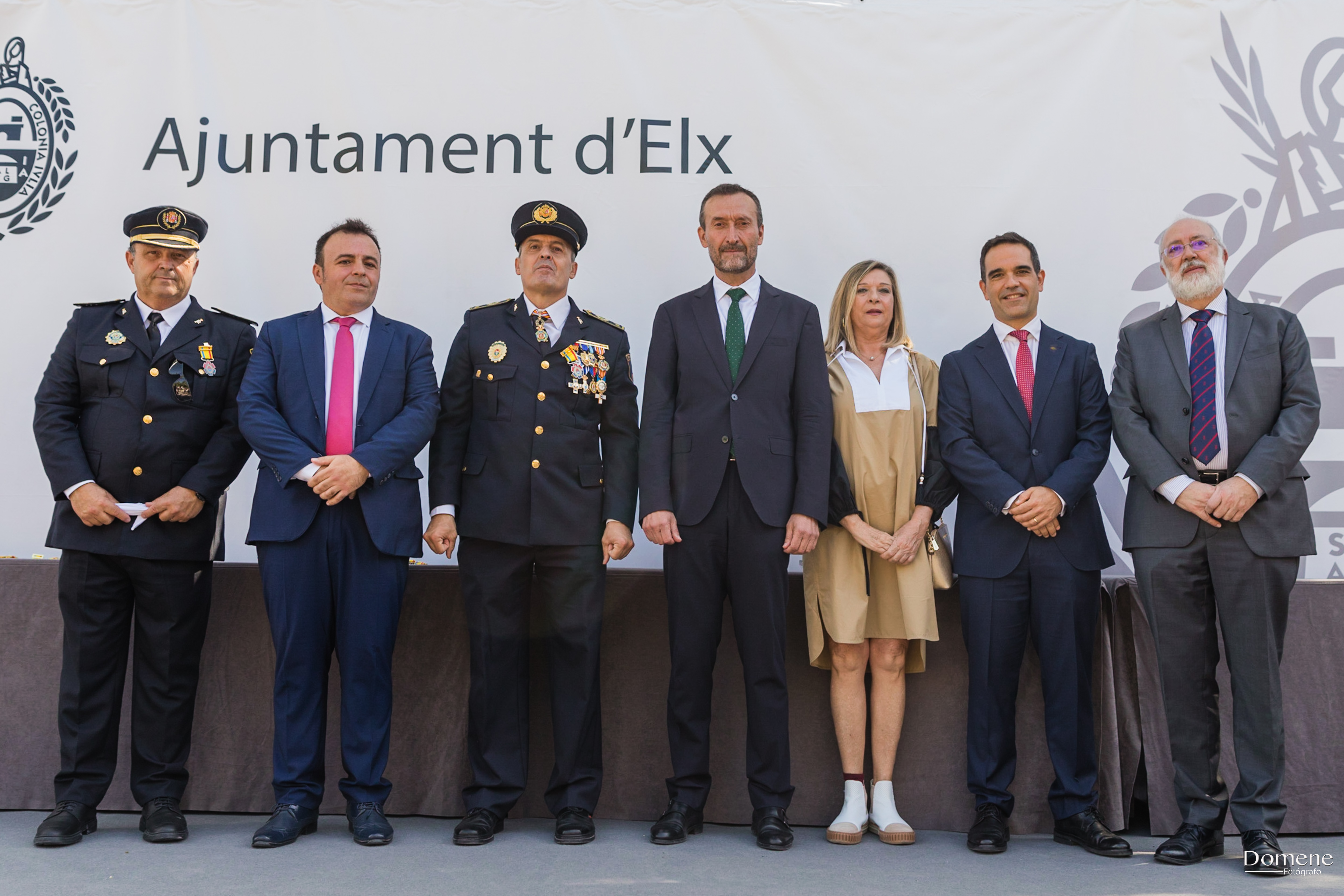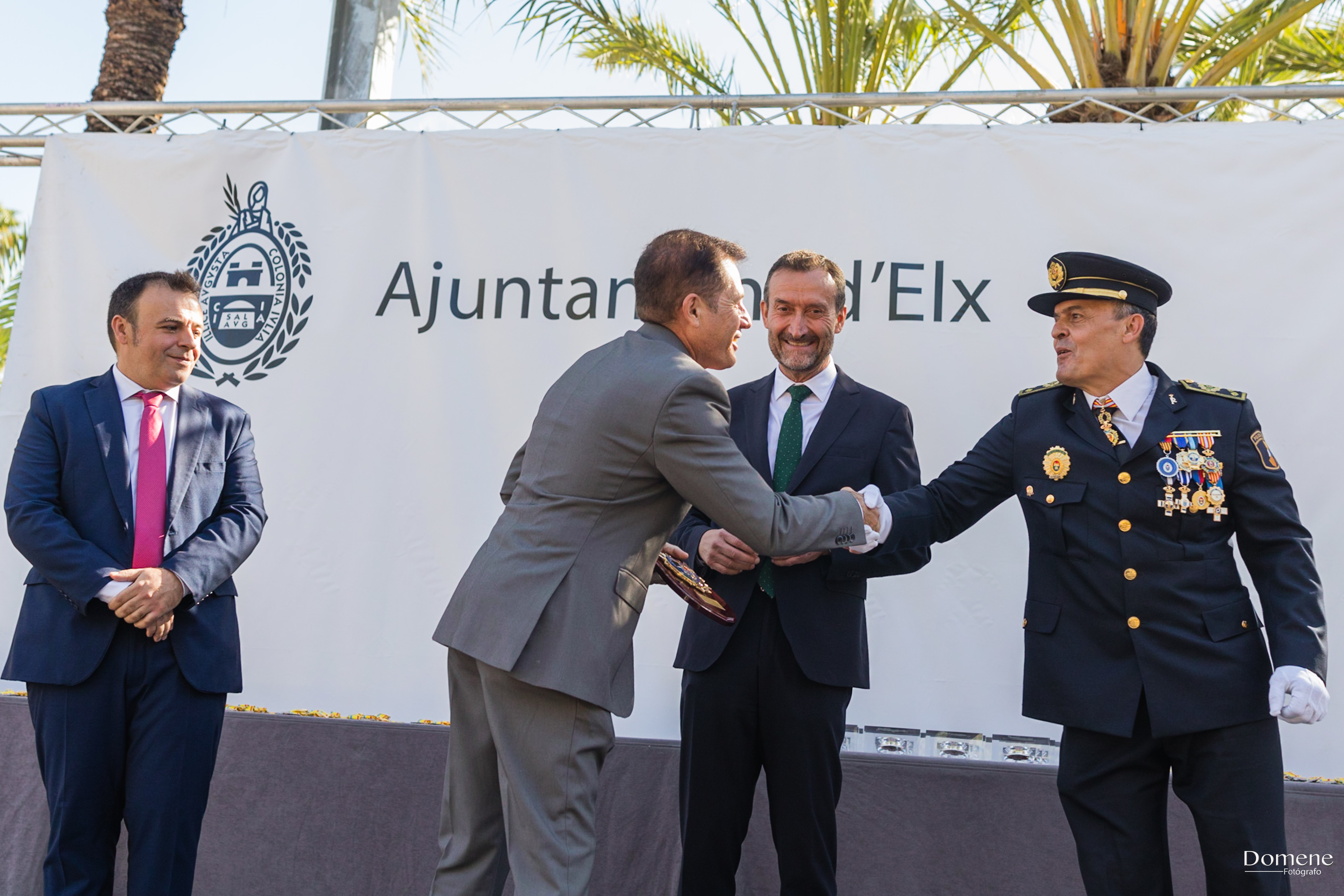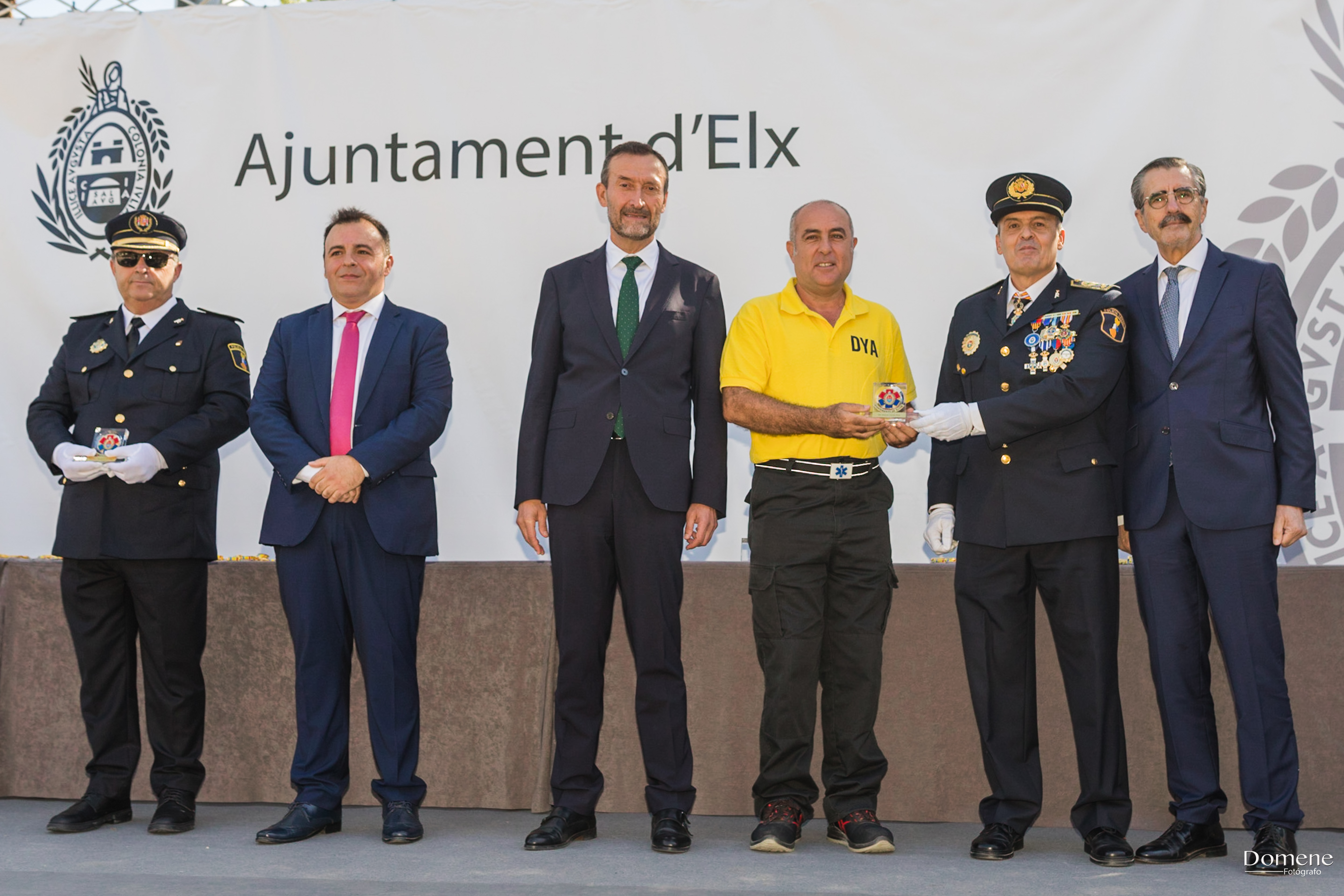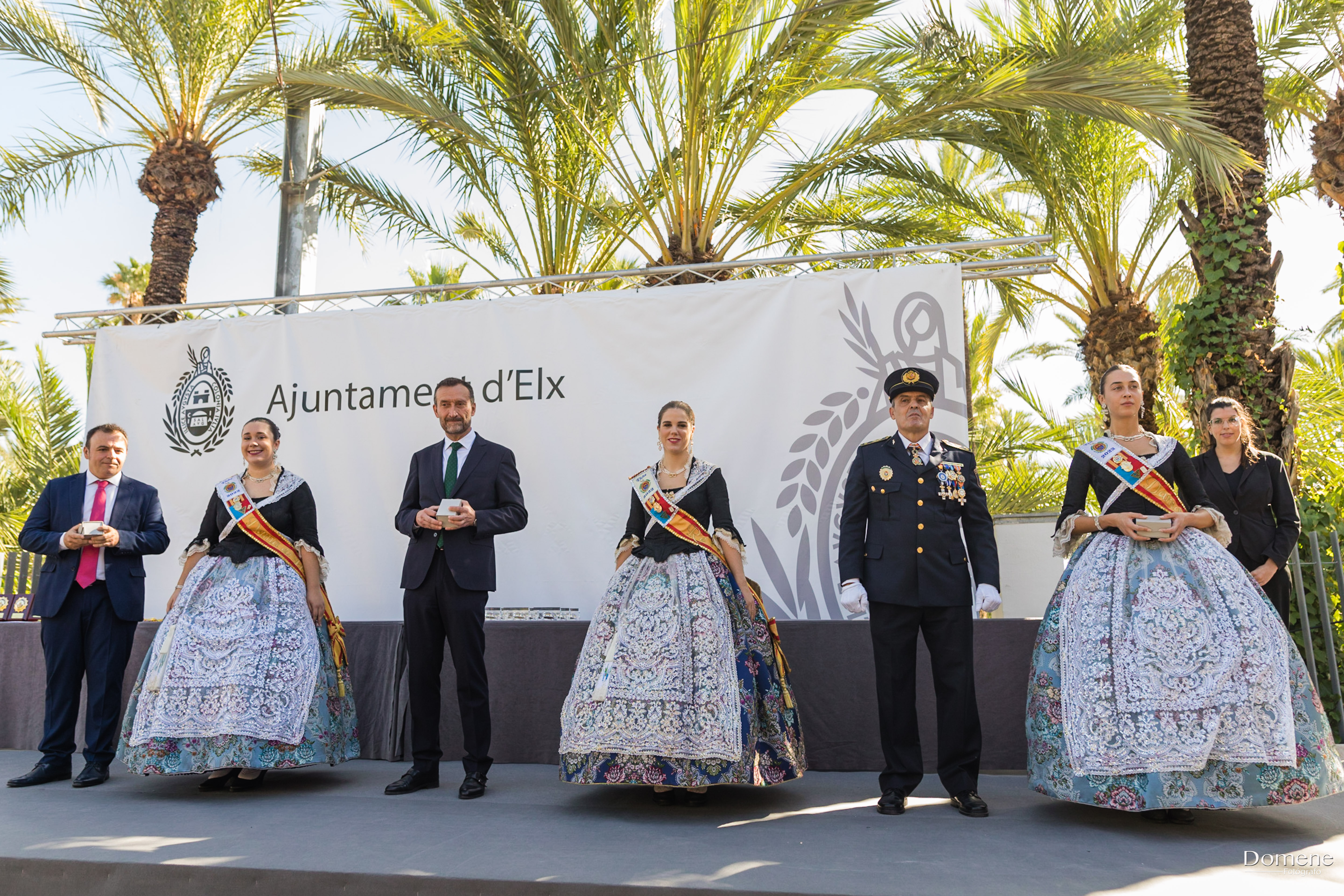 - El acto se inicia con la presencia de Carlos González, alcalde de Elche, Ramón Abad, Concejal de Seguridad y César Zaragoza, Comisario Principal Jefe (relata lo que va sucediendo un presentador/relator).