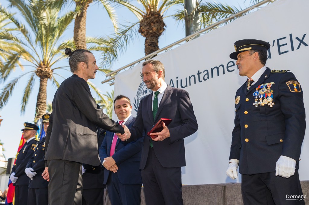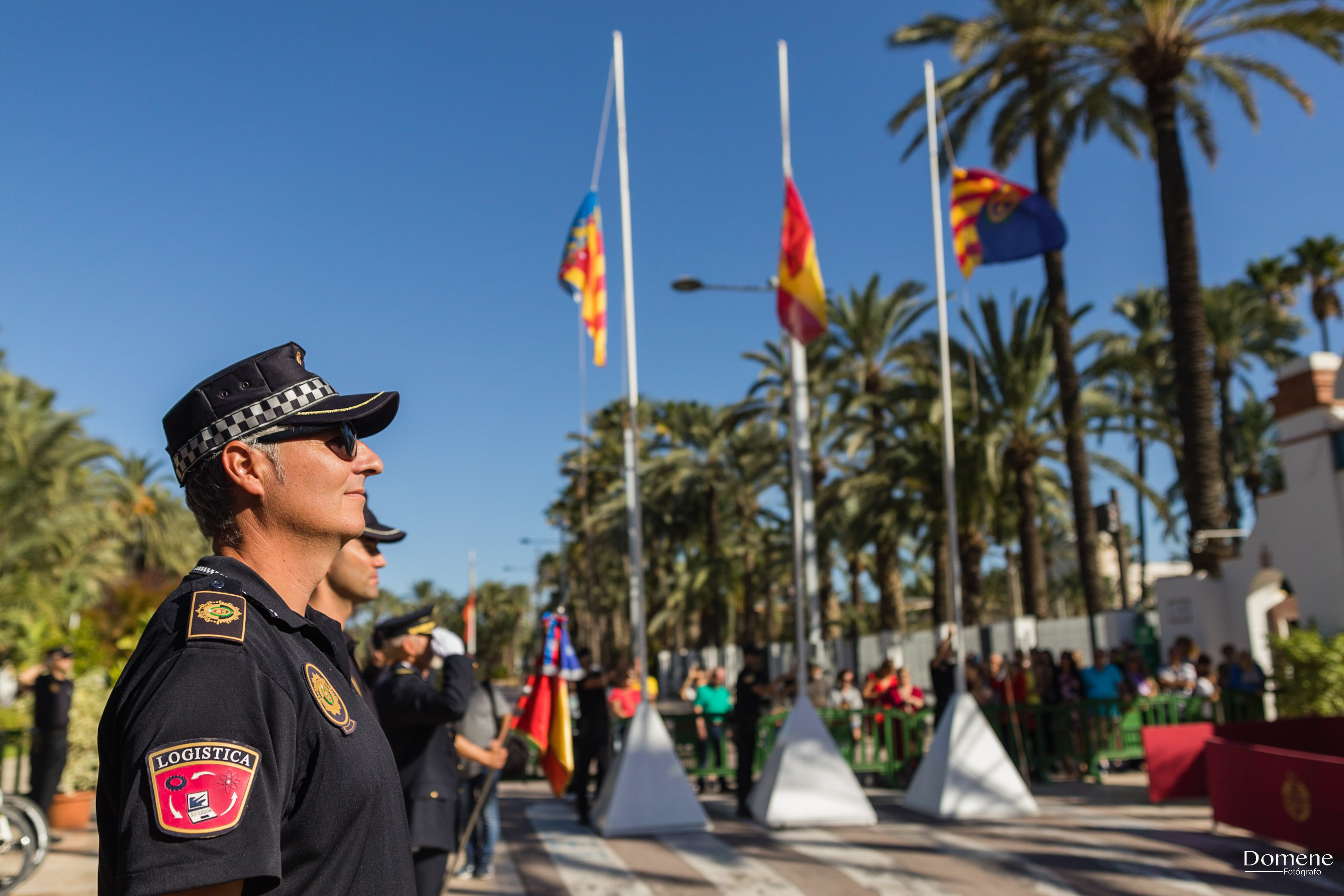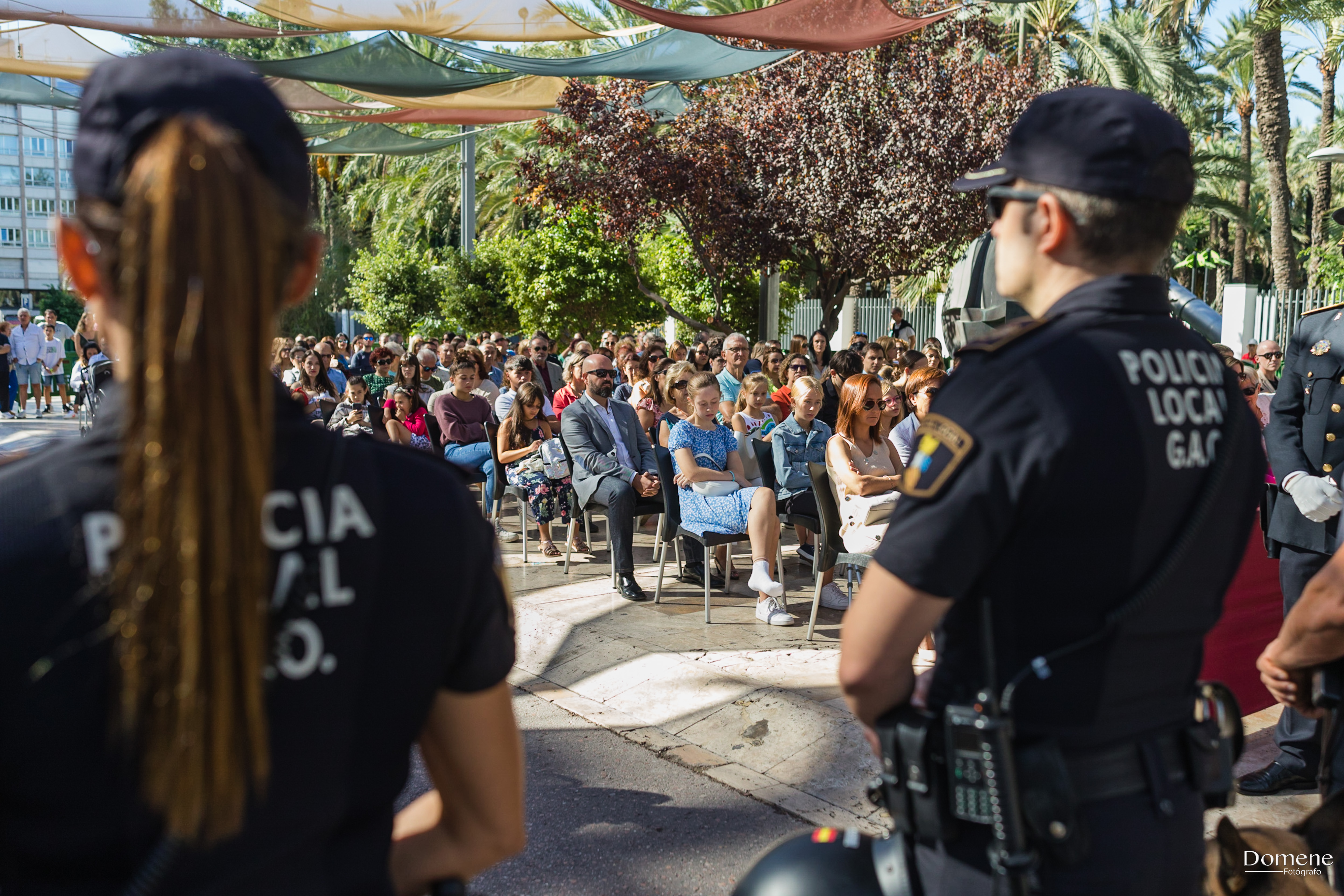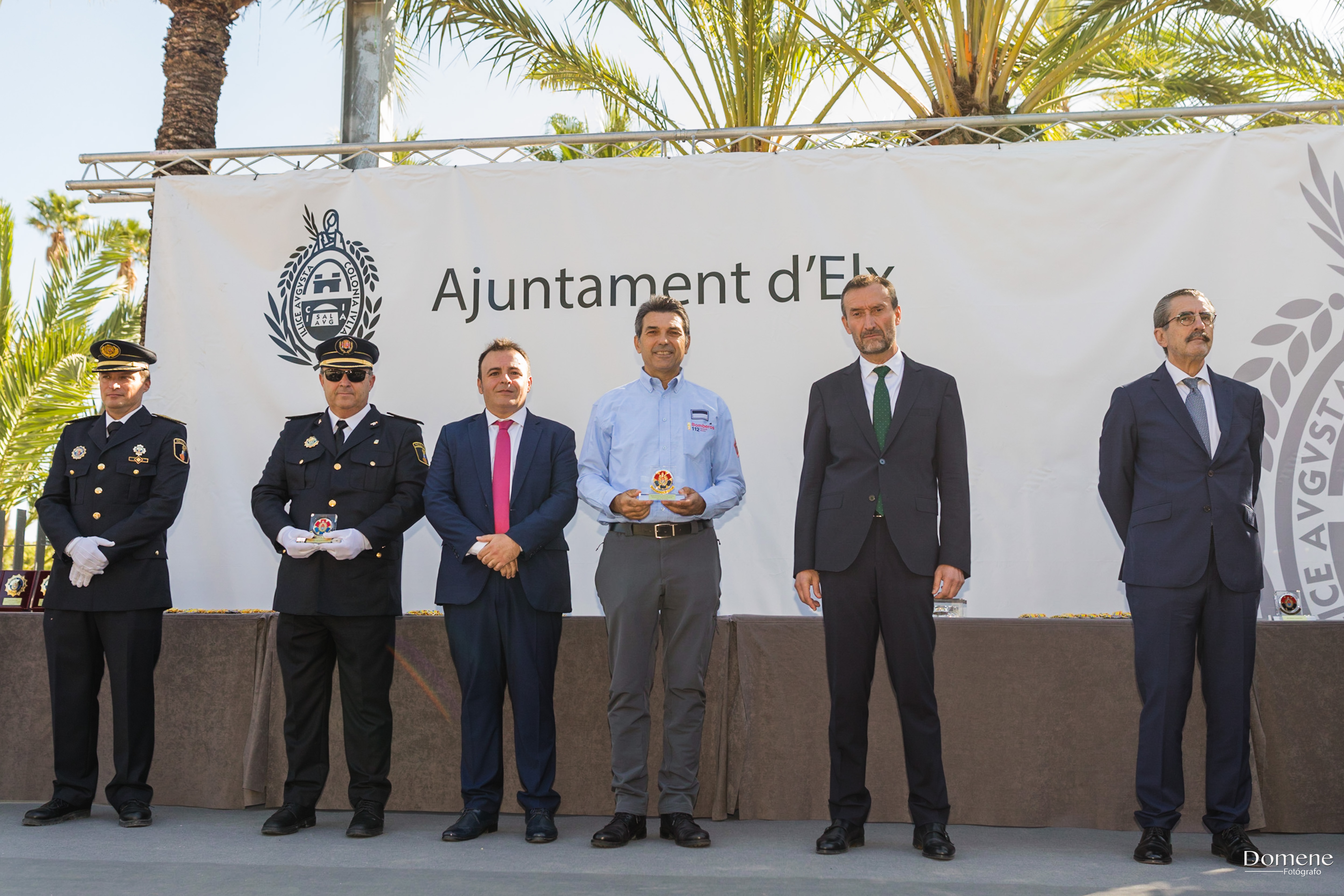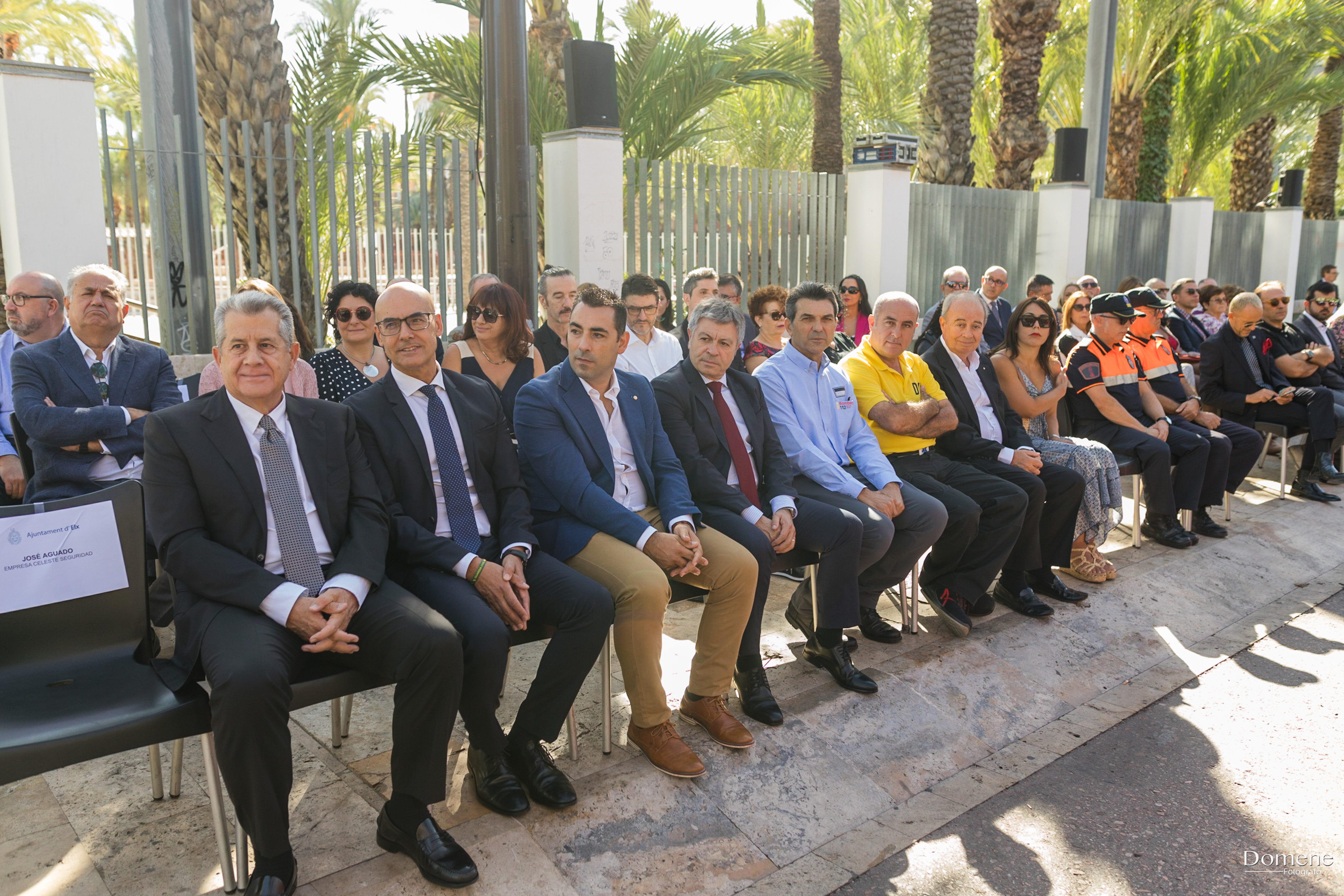 - El acto se inicia con la presencia de Carlos González, alcalde de Elche, Ramón Abad, Concejal de Seguridad y César Zaragoza, Comisario Principal Jefe (relata lo que va sucediendo un presentador/relator).