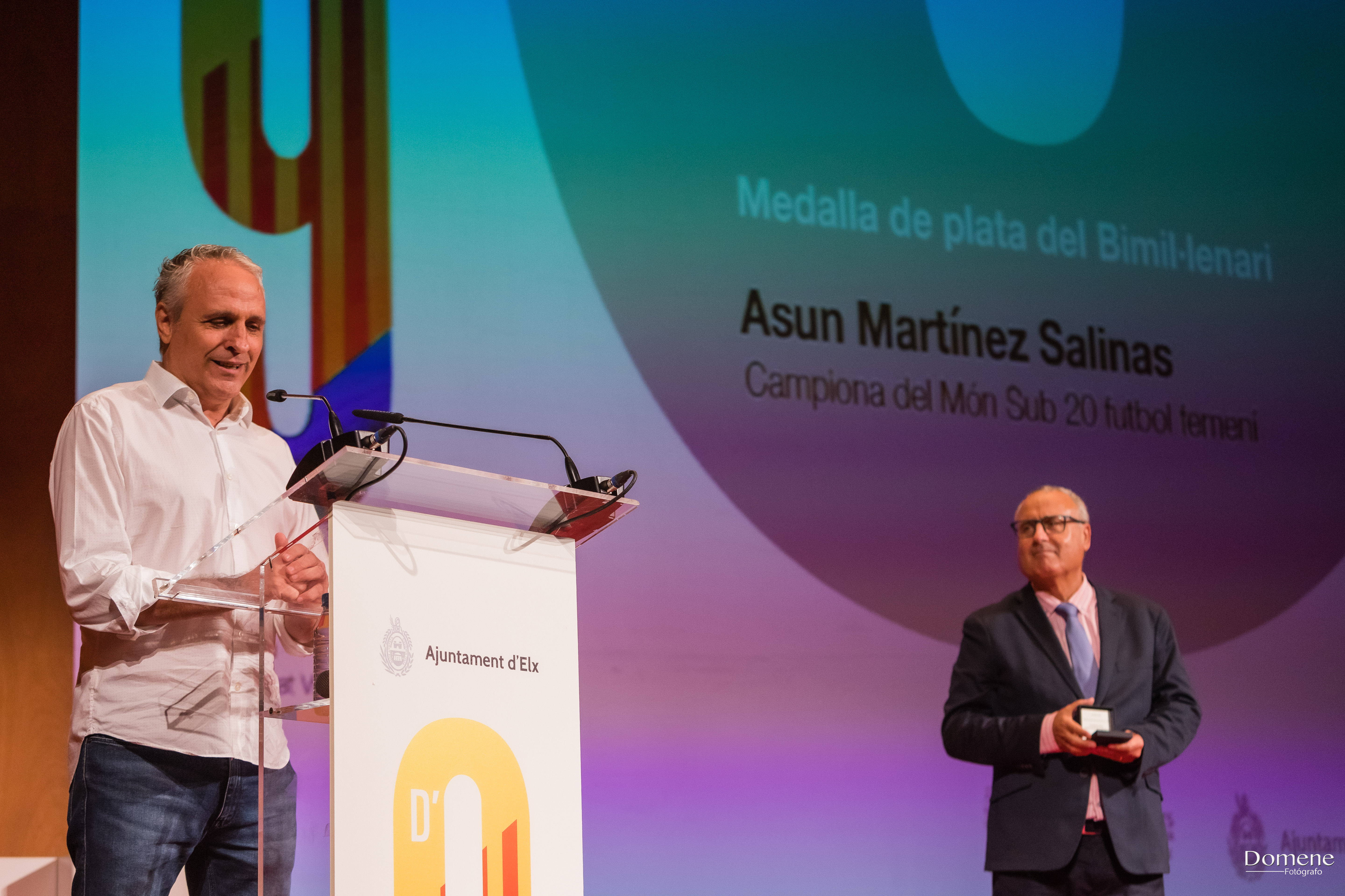 - Invita al escenario a la autoridad (teniente de alcalde o concejal del gobierno municipal entregran las medallas y el alcalde el Ram d´Or) que entrega la distinción.