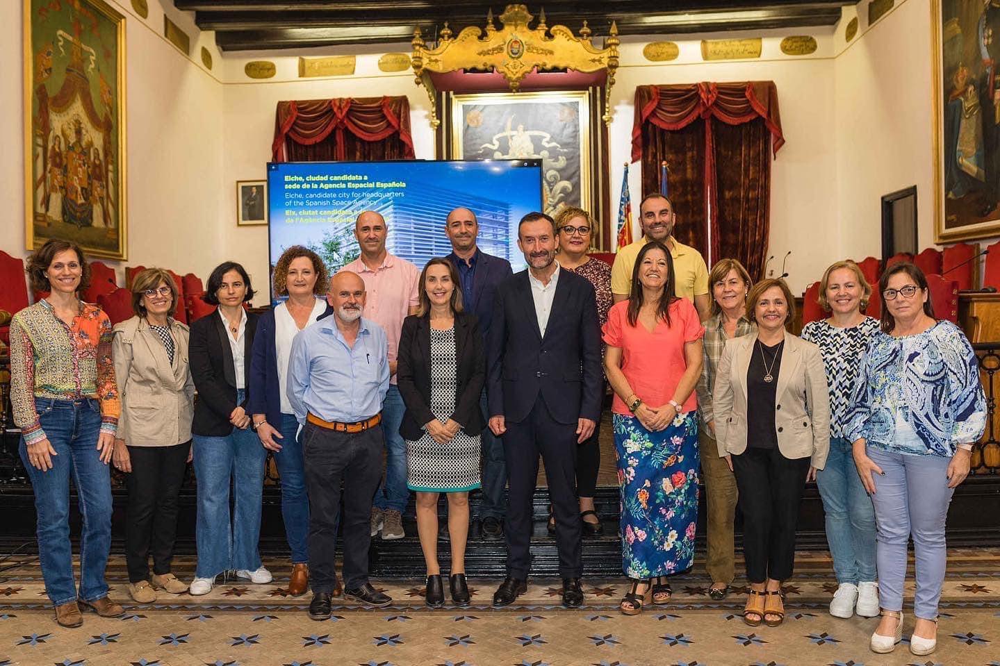 El acto presencial de apoyo a la candidatura de Elche como sede de la Agencia Espacial tiene una estructura sencilla, el colectivo firmante mantiene un breve encuentro con el alcalde de la ciudad, y el concejal de promoción económica, y a continuación, se realiza la firma de respaldo ante los medios de comunicación acreditados.