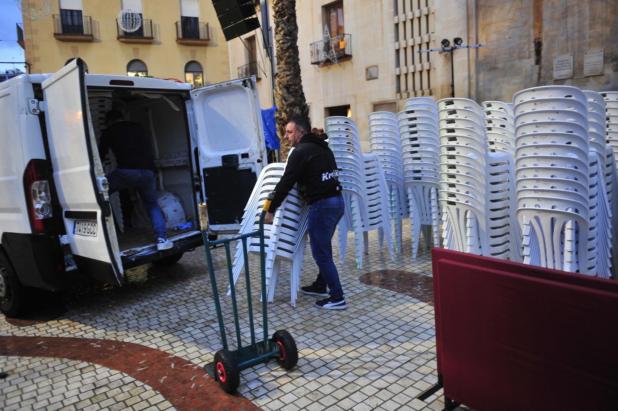 Aunque en realidad tenemos buenos y profesionales colaboradores que nos ayudan en la toma de decisiones meteorológicas, ante la previsión de lluvia que se preveía días antes del Acto del Encendido del Alumbrado extraordinario de Navidad y Concierto de Villancicos adelantamos una hora el evento para asegurarnos que no tendríamos lluvia ni en el momento del montaje ni durante el evento. Sin embargo, la nuble no siguió el ritmo previsto y una hora antes de empezar se puso a llover considerablemente.
