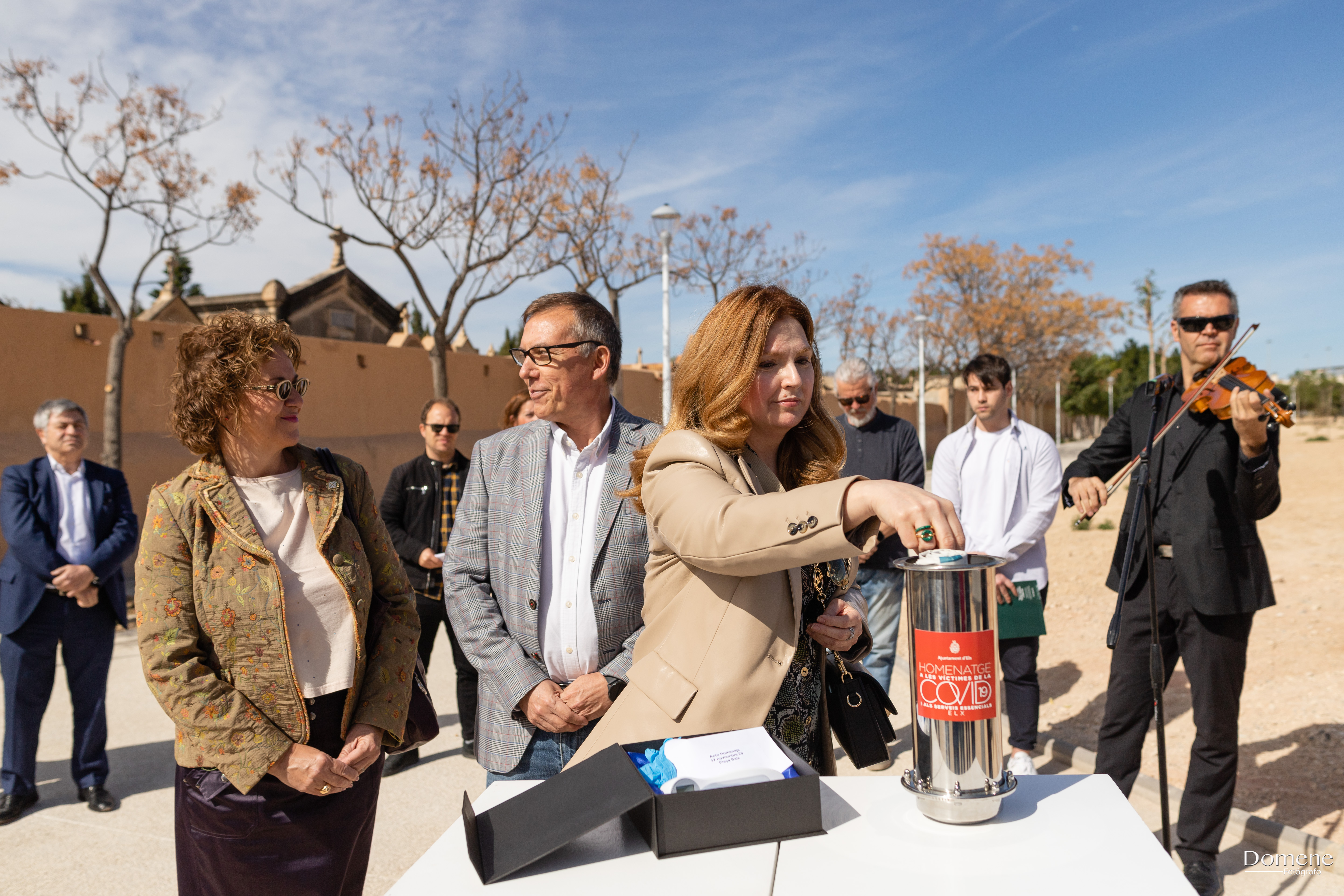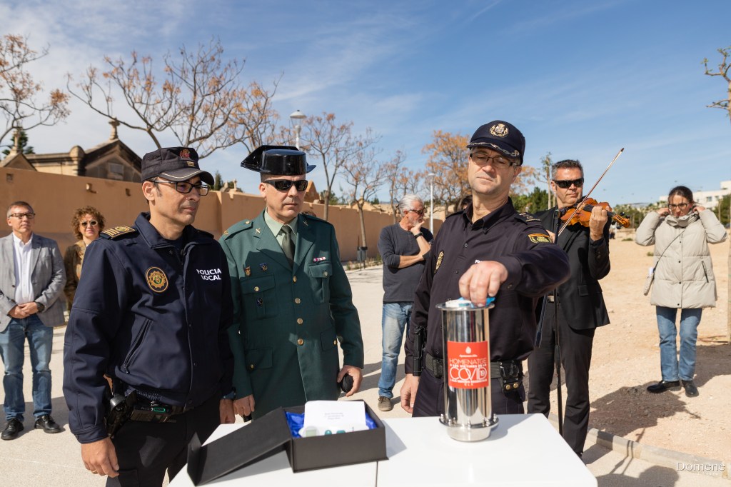 - Del mismo modo que en 2021, el acto de inauguración del jardín de las víctimas del Covid-19 y homenaje al personal de servicios esenciales se inició con 1 minuto de silencio en memoria de todos los ilicitanos/as que nos han dejado.