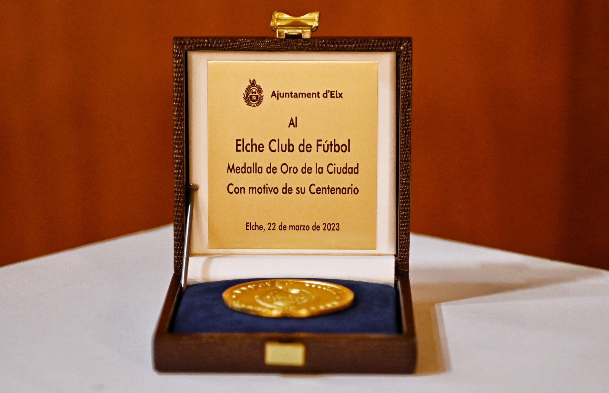 Hace unas semanas el Ayuntamiento de Elche coincidiendo con el año del Centenario del Elche Club de Fútbol, le hacia entrega al Club en un Acto Institucional de la más alta distinción municipal que recoge el Reglamento de Honores y distinciones, la Medalla de Oro de la Ciudad.