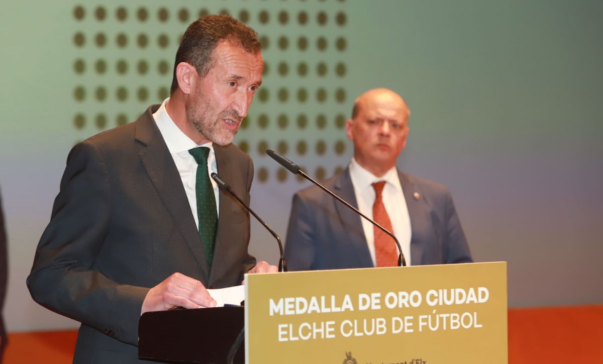El presentador, leyó el acuerdo de concesión de la distinción, a continuación, invitó al escenario al alcalde de la Ciudad, Carlos González y al presidente del Elche Club de Fútbol para la entrega.