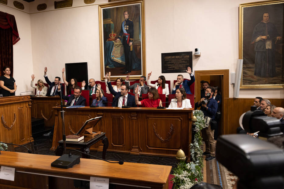 - Seguidamente, se procede a la votación ordinaria de los 27 concejales a «Mano alzada».