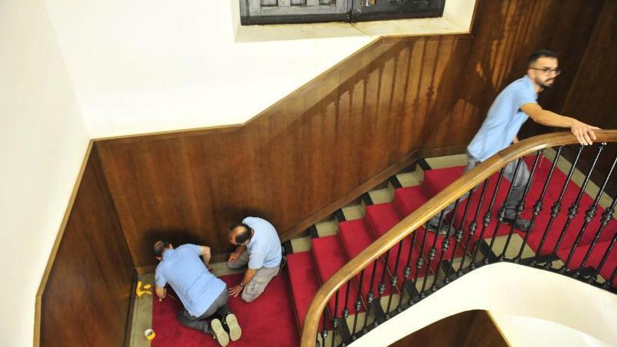 En el caso del Ayuntamiento de Elche se establecen 3 ESPACIOS para albergar invitados, en primer lugar, el Salón de Plenos que acoge a los familiares de los concejales y a las principales autoridades y tejido social de la ciudad, y en segundo lugar, habilitamos la Sala del Consell, un sala contigua al salón de plenos donde poder atender el resto de invitados que siguen el acto a través de una pantalla, en estos dos casos los invitados acuden con invitación previa de la alcaldía. Y en último, se coloca una pantalla en la entrada al Consistorio para que el público general pueda seguir el Pleno con entrada libre hasta completar aforo.