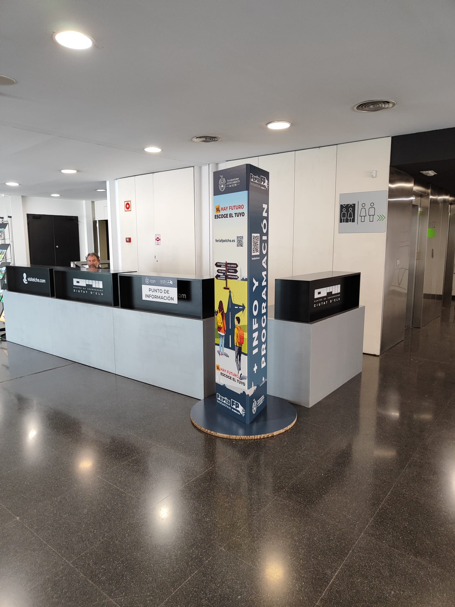 El Centro de Congresos de Elche fue el lugar escogido por el cliente para la organización de la I Feria Municipal de FP, un espacio que cumplía con los requisitos indispensables para las características de este evento: