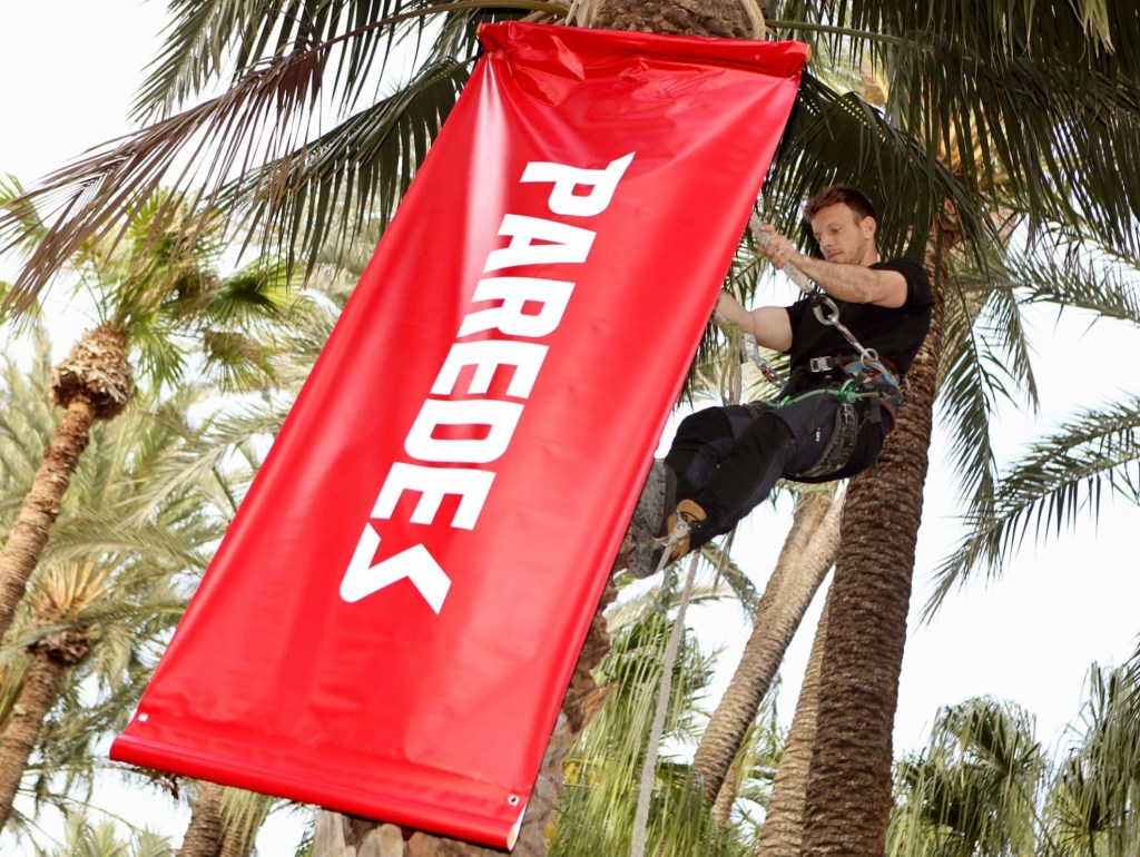 - El inicio oficial de la gala fue toda una declaración de intenciones: en el entorno más icónico del Huerto del Cura, junto a la imponente Palmera Imperial, un palmerero escaló una palmera para desplegar una banderola con el nombre de la marca. Un gesto sorprendente y simbólico que marcó el tono del evento desde el primer minuto.