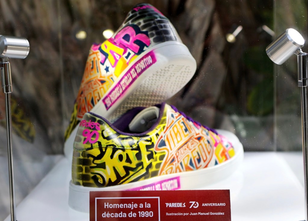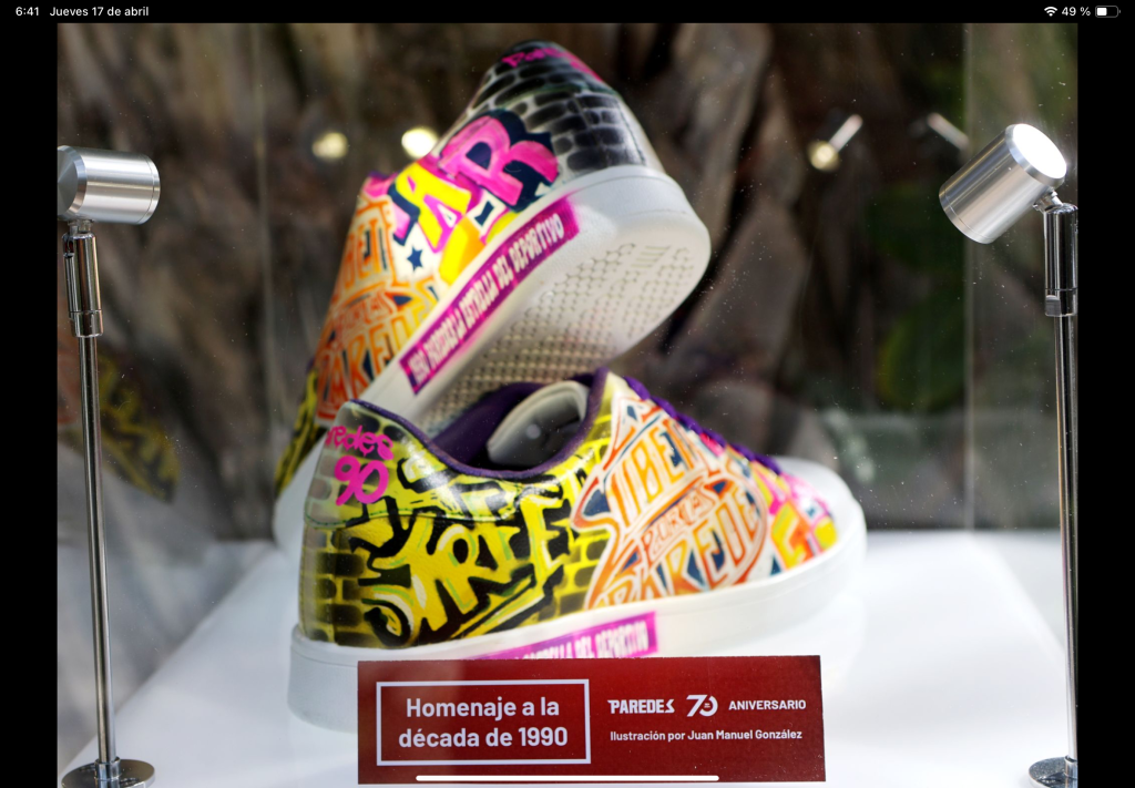 - Exposición de producto: creamos un espacio museográfico con una exposición de zapatillas emblemáticas de la marca personalizadas para el evento, donde cada modelo contaba una parte de la historia de Paredes.