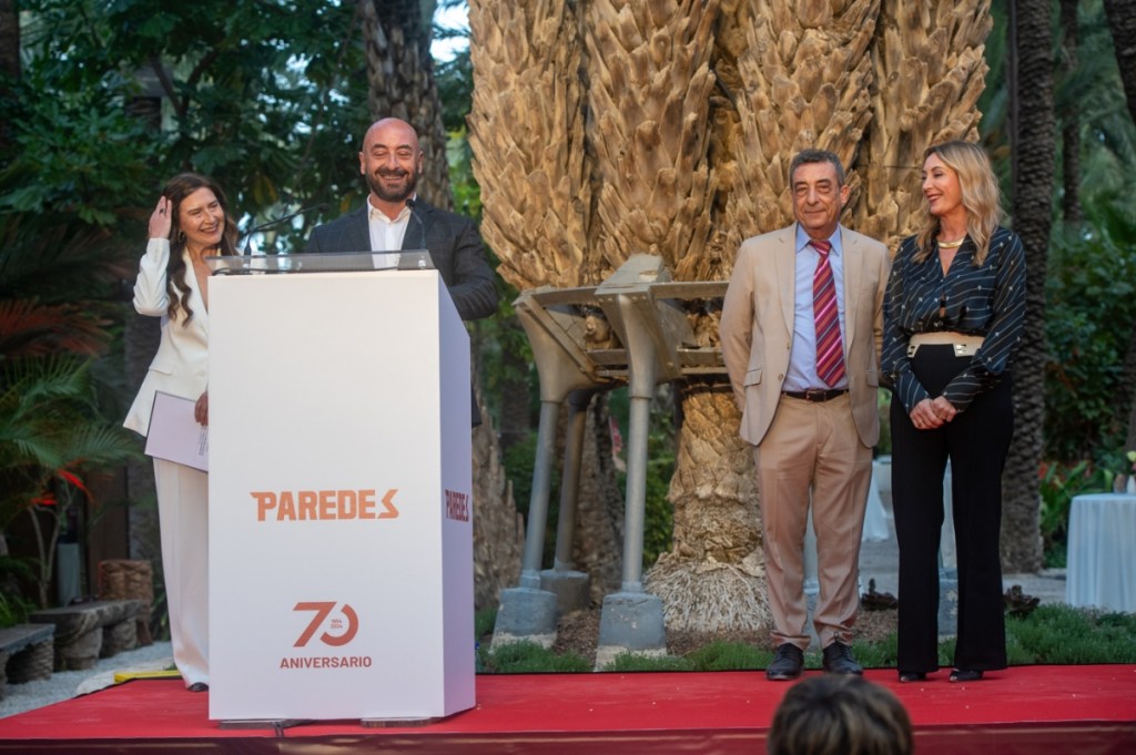 - Uno de los momentos más emotivos fue la proyección del vídeo documental conmemorativo, que recorría los 70 años de historia de la empresa, incluyendo imágenes inéditas y testimonios clave. Este audiovisual preparó el ambiente para otro instante de gran carga emocional: la entrega de dos distinciones a título póstumo a personas que han sido fundamentales en la trayectoria de Paredes.